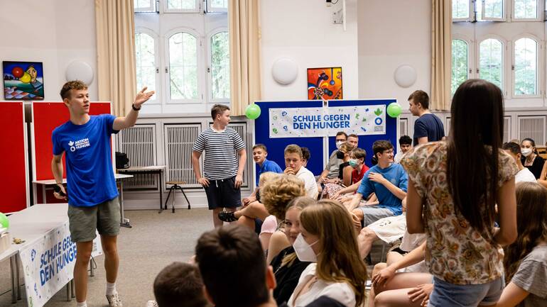 Unser Bildungsprogramm Schulen gegen den Hunger informiert Schüler*innen zum Thema Hunger & Mangelernährung, sensibilisiert sie für globale Zusammenhänge und Wechselwirkungen und mobilisiert sie, sich als Schulgemeinschaft für eine gerechtere Welt zu engagieren.